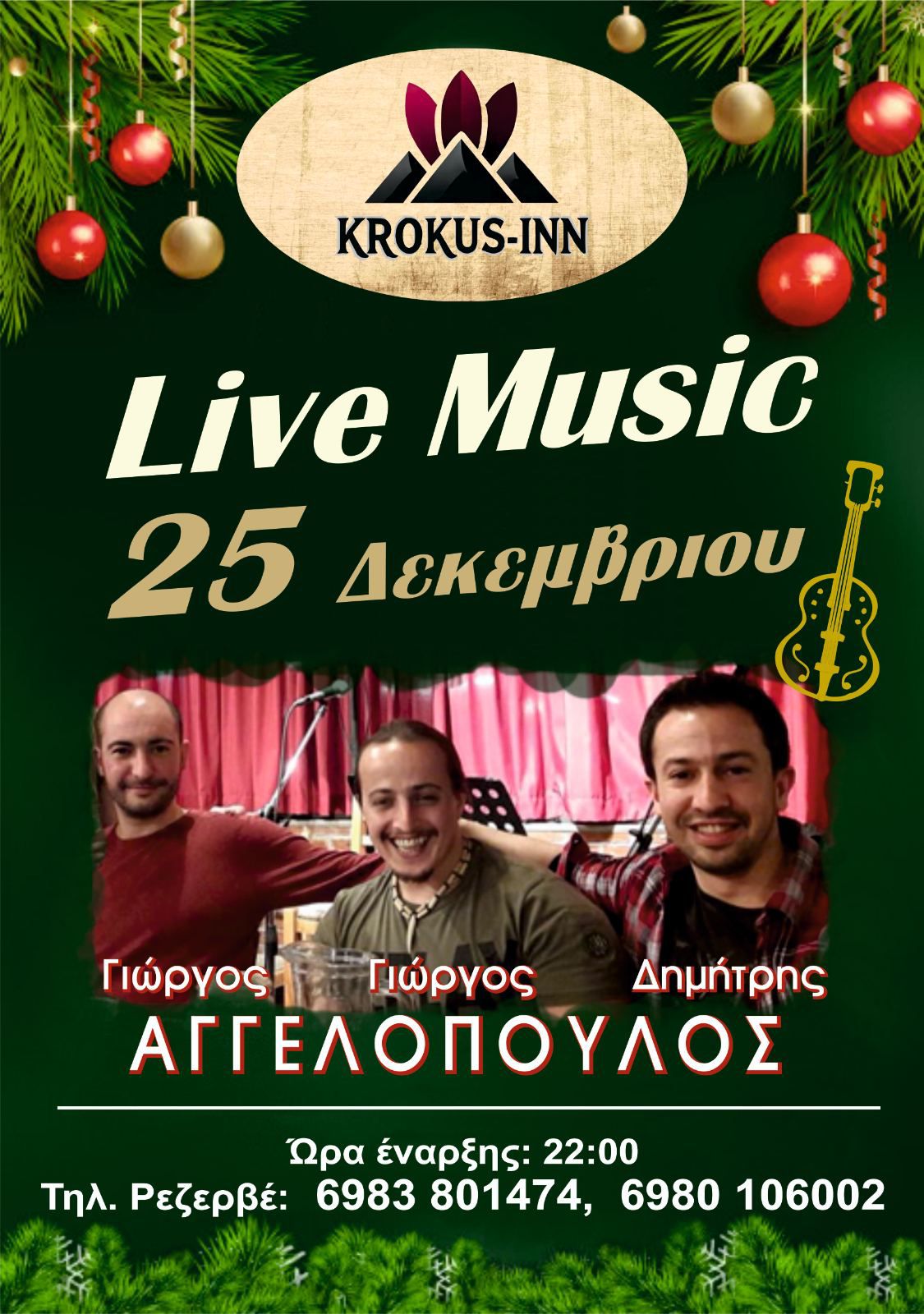 στις 25 Δεκεμβρίου και ώρα 22:00 στο ξενώνα Κροκυλείου