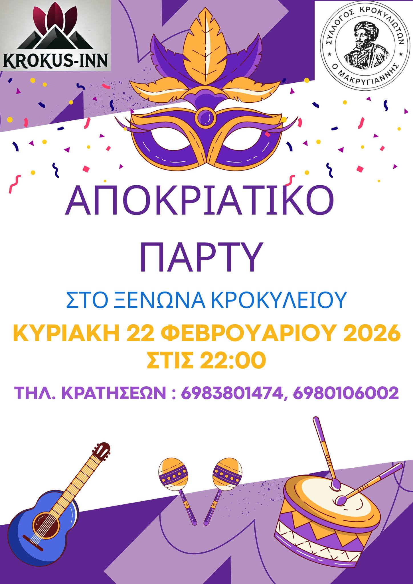 για να γιορτάσουμε όλοι μαζί με κέφι, μουσική και χορό τη φετινή Αποκριά! 🎭✨